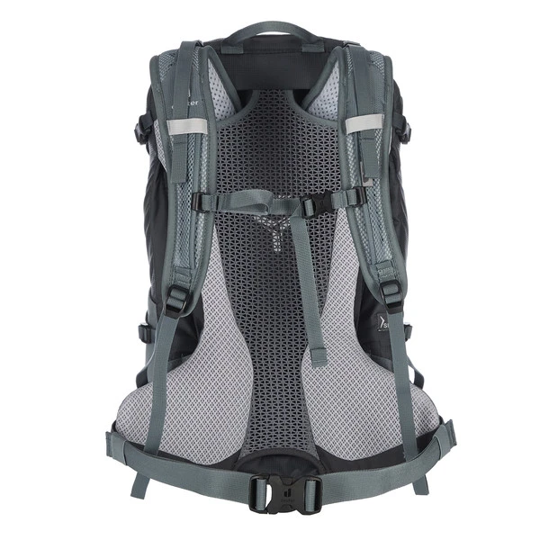 Seinen bequemen Sitz verdankt der Rucksack dem Aircomfort-Rückensystem und dem leichten Federstahlrahmen. Gemeinsam mit dem Mesheinsatz am Rücken und den luftdurchlässigen Active Fit Schultergurten ist somit für gute Belüftung gesorgt.