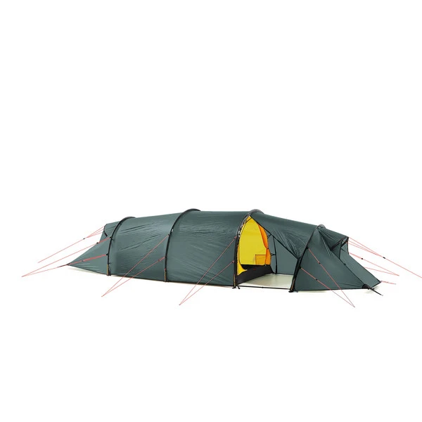Großes Tunnelzelt mit zwei Apsiden. Geeignet für Touren zu jeder Jahreszeit. Trotz der Größe ist es leicht genug, um auch bei Wanderungen im Rucksack getragen zu werden.