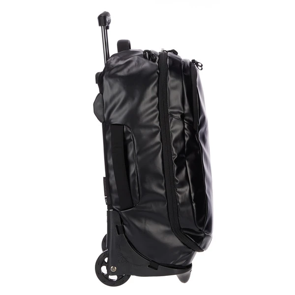 Das TPU-beschichtete, recycelte Außenmaterial des Rolling Transporter Carry-On ist unempfindlich gegenüber Schmutz und Wasser und somit besonders leicht zu reinigen. Das stabile Chassis mit großen Rollen verträgt selbst unwegsames Gelände. Und auch wenn es ruckelig wird, liegt der ausziehbare Teleskopgriff dank ergonomischer Griffzone immer gut in der Hand.