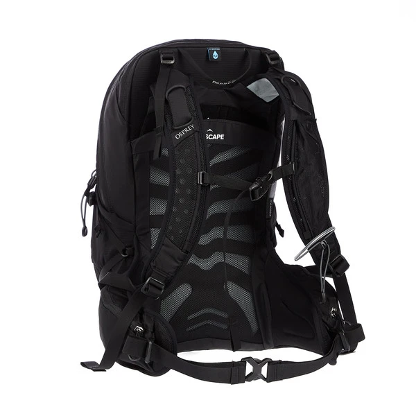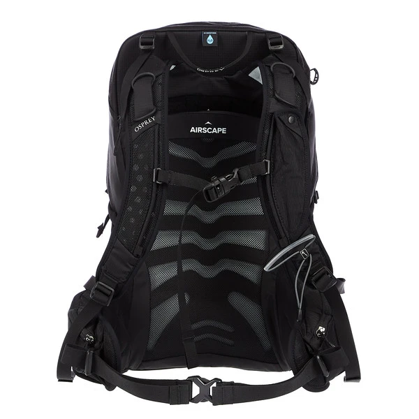 Die Talon/Tempest-Reihe wurde von Osprey mit dem modernen AirScape-Rückensystem ausgestattet. Die feste HDPE-Rückenplatte ist spritzgegossen und bleibt auch bei hoher Traglast verwindungssteif. Dabei passt sich das Material immer noch dem Rücken an. Der Meshbezug sorgt für eine sehr gute Belüftung des Rückens.