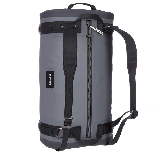 Das Außenmaterial der Panga Duffle besteht aus einem besonders dichten Nylon und einer dicken TPU-Laminierung. Das macht die Tasche nicht nur wasserdicht, sondern auch einstichresistent. Die Nähte der Duffle selbst sind verschweißt und an den Zurrpunkten verstärkt. Die Tragegurte der Panga Duffel sind dank der praktischen Metallkarabiner an beiden Enden bei Nichtgebrauch schnell entfernt.